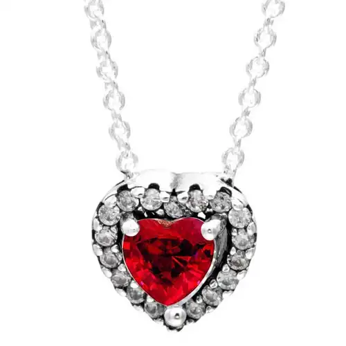 Srebrena ženska ogrlica u obliku srca, crveni kamen