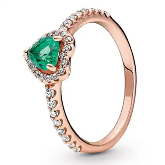 Ženski prsten rose gold, zeleni kamen